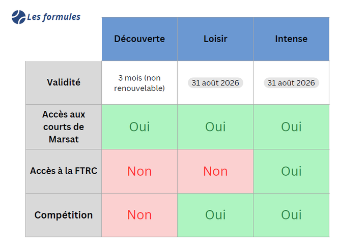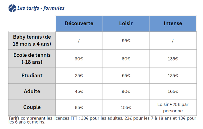 Les formules et tarifs